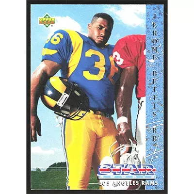 This is a 1993 Upper Deck Jerome Bettis Star Rookie football card. The card is #20 and pictures show condition.