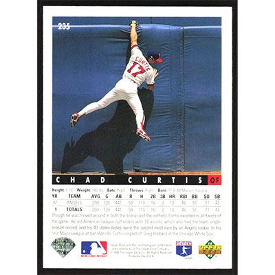 This is a 1993 Upper Deck Chad Curtis baseball card. The card is #235 and pictures show condition.