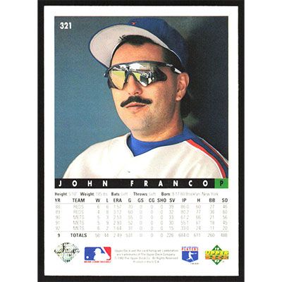 This is a 1993 Upper Deck John Franco baseball card. The card is #321 and pictures show condition.