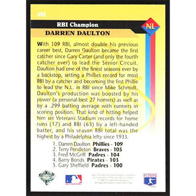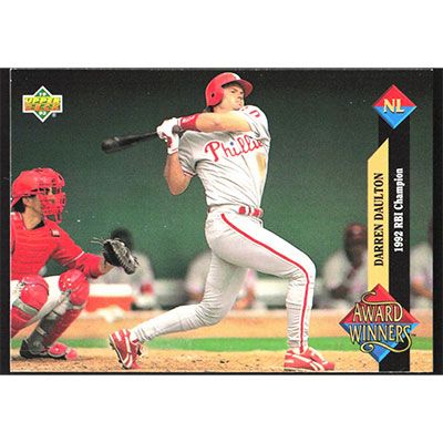 This is a 1993 Upper Deck Darren Daulton Award Winners baseball card. The card is #498 and pictures show condition.