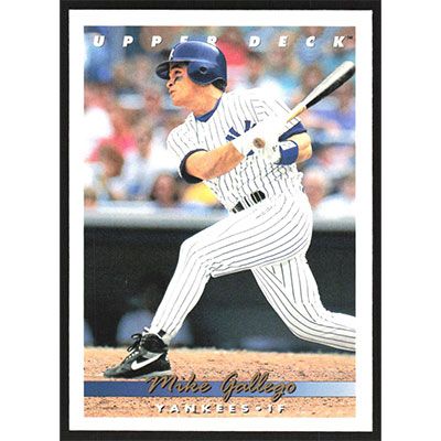 This is a 1993 Upper Deck Mike Gallego baseball card. The card is #600 and pictures show condition.
