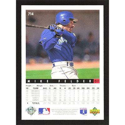 This is a 1993 Upper Deck Mike Felder baseball card. The card is #714 and pictures show condition.
