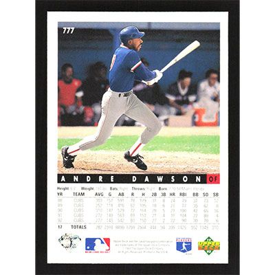 This is a 1993 Upper Deck Andre Dawson baseball card. The card is #777 and pictures show condition.