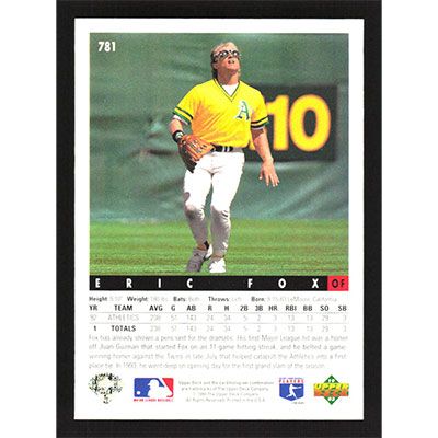 This is a 1993 Upper Deck Eric Fox baseball card. The card is #781 and pictures show condition.