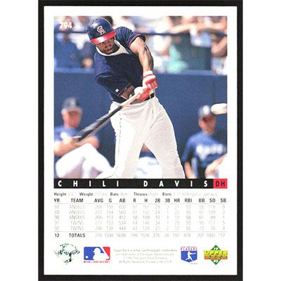 This is a 1993 Upper Deck Chili Davis baseball card. The card is #794 and pictures show condition.