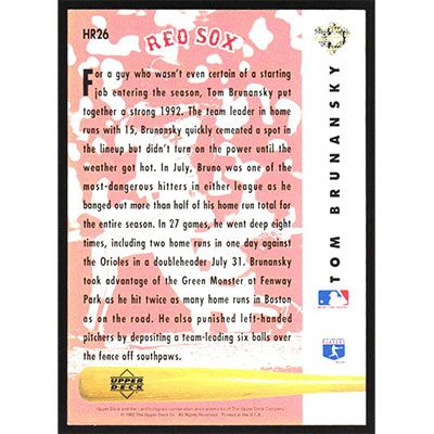 This is a 1993 Upper Deck Home Run Heroes Tom Brunansky baseball card. The card is #HR26 and pictures show condition.
