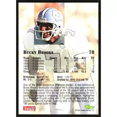 This is a 1994 Classic Bucky Brooks NFL Draft football card. The card is #78 and pictures show condition.