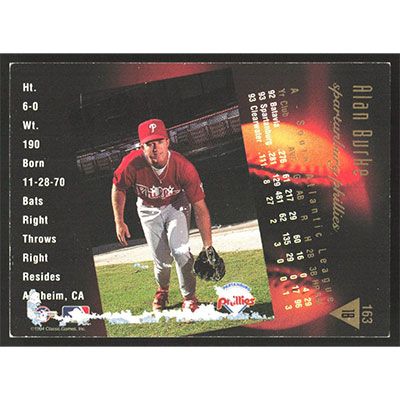 This is a 1994 Classic/Best Gold Alan Burke baseball card. The card is #163 and pictures show condition.