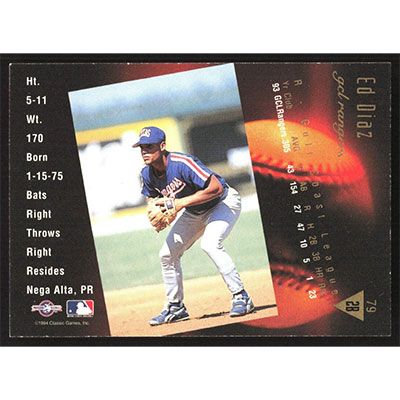 This is a 1994 Classic/Best Gold Ed Diaz baseball card. The card is #79 and pictures show condition.