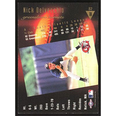 This is a 1994 Classic/Best Gold Nick Delvecchio baseball card. The card is #82 and pictures show condition.