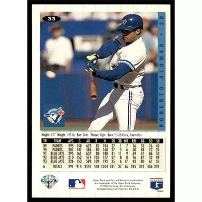 This is a 1994 Collector's Choice Silver Signature Roberto Alomar baseball card. The card is #33 and pictures show condition.