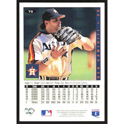 This is a 1994 Collector's Choice Silver Signature Ken Caminiti baseball card. The card is #72 and pictures show condition.