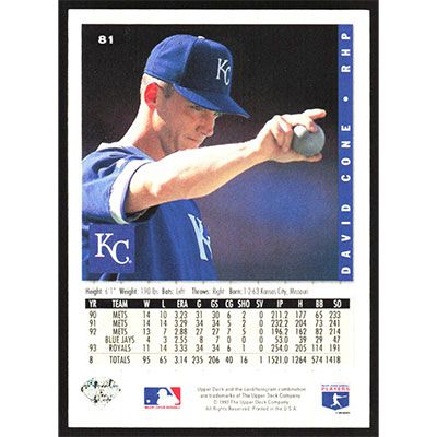 This is a 1994 Collector's Choice Silver Signature David Cone baseball card. The card is #81 and pictures show condition.