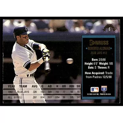 This is a 1994 Donruss Roberto Alomar baseball card. The card is #6 and pictures show condition.