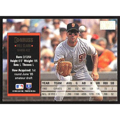 This is a 1994 Donruss Special Edition Will Clark baseball card. The card is #38 and pictures show condition.
