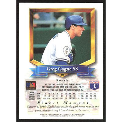 This is a 1994 Finest Greg Gagne baseball card. The card is #276 and pictures show condition.
