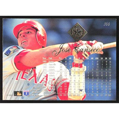 This is a 1994 Flair Jose Canseco baseball card. The card is #344 and pictures show condition.