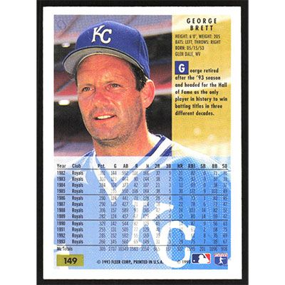 This is a 1994 Fleer George Brett baseball card. The card is #149 and pictures show condition.