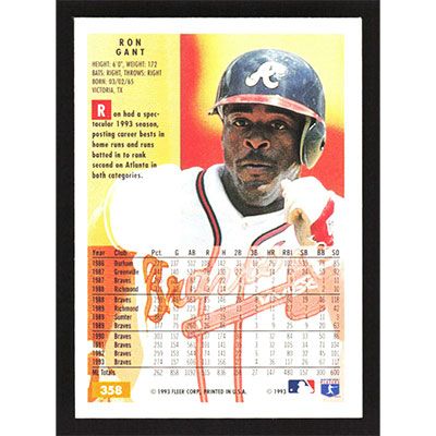 This is a 1994 Fleer Ron Gant baseball card. The card is #58 and pictures show condition.