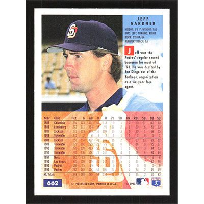 This is a 1994 Fleer Jeff Gardner baseball card. The card is #662 and pictures show condition.