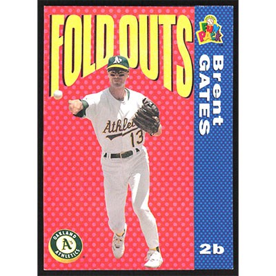 This is a 1994 Fun Pack Brent Gates Fold Outs baseball card. The card is #221 and pictures show condition.