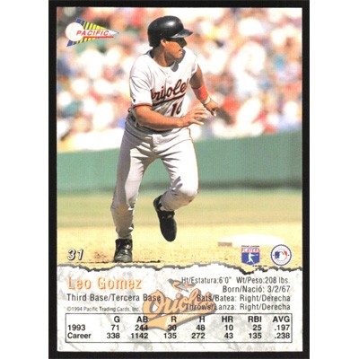 This is a 1994 Pacific Leo Gomez baseball card. The card is #31 and pictures show condition.