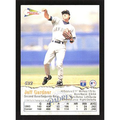 This is a 1994 Pacific Jeff Gardner baseball card. The card is #522 and pictures show condition.