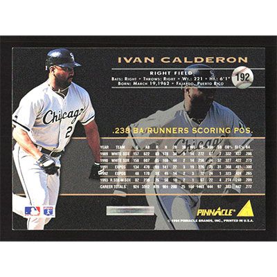 This is a 1994 Pinnacle Ivan Calderon baseball card. The card is #192 and pictures show condition.