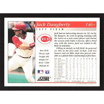 This is a 1994 Score Jack Daugherty baseball card. The card is #146 and pictures show condition.