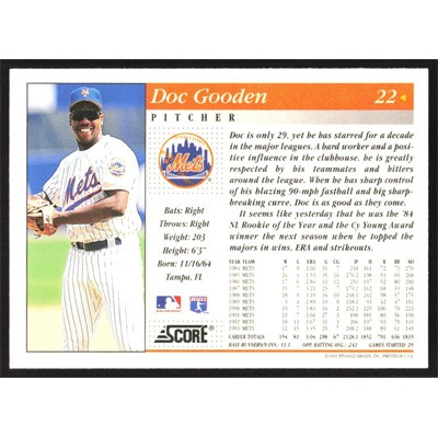 This is a 1994 Score Doc Gooden baseball card. The card is #22 and pictures show condition.