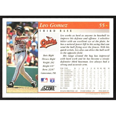 This is a 1994 Score Leo Gomez baseball card. The card is #55 and pictures show condition.