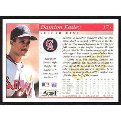 This is a 1994 Score Gold Rush Damion Easley baseball card. The card is #17 and pictures show condition.