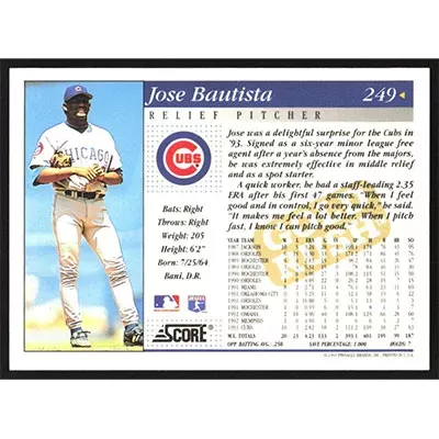 This is a 1994 Score Gold Rush Jose Bautista baseball card. The card is #249 and pictures show condition.