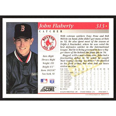 This is a 1994 Score Gold Rush John Flaherty baseball card. The card is #313 and pictures show condition.