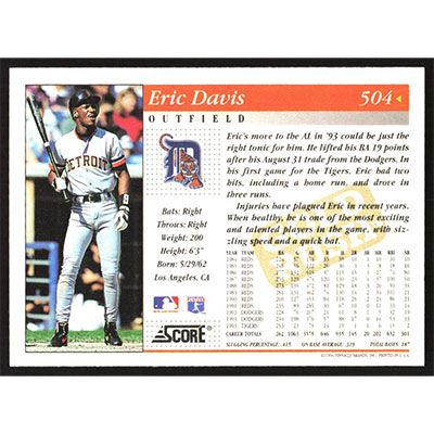 This is a 1994 Score Gold Rush Eric Davis baseball card. The card is #504 and pictures show condition.