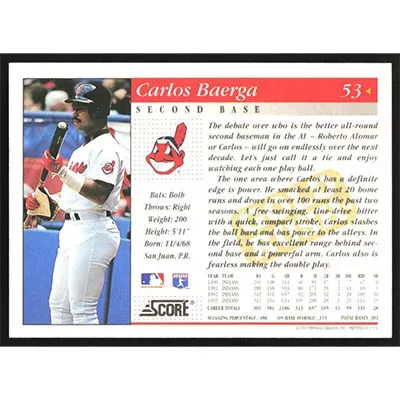 This is a 1994 Score Gold Rush Carlos Baerga baseball card. The card is #53 and pictures show condition.