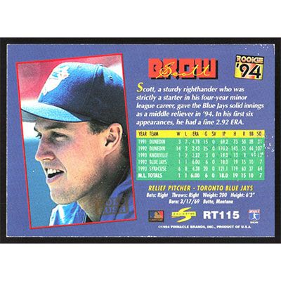 This is a 1994 Score Rookie/Traded Gold Rush Scott Brow baseball card. The card is #RT115 and pictures show condition.