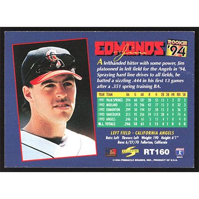 This is a 1994 Score Rookie/Traded Jim Edmonds baseball card. The card is #RT160 and pictures show condition.