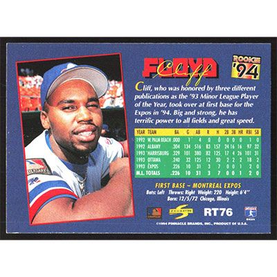 This is a 1994 Score Rookie/Traded Cliff Floyd baseball card. The card is #RT76 and pictures show condition.