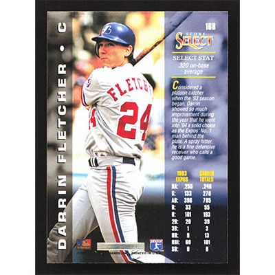 This is a 1994 Select Darrin Fletcher baseball card. The card is #168 and pictures show condition.