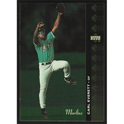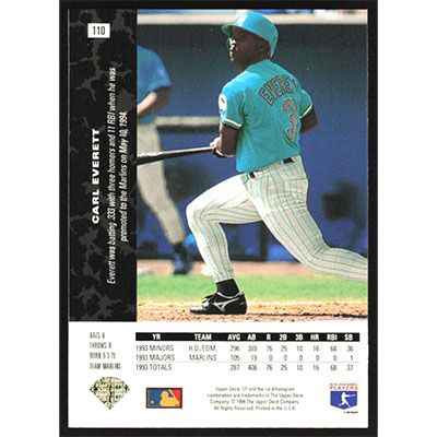 This is a 1994 SP Carl Everett baseball card. The card is #110 and pictures show condition.