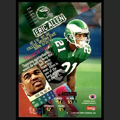 This is a 1994 Stadium Club Eric Allen football card. The card is #14 and is in NM-MT condition.