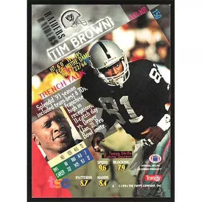 This is a 1994 Stadium Club Tim Brown football card. The card is #150 and pictures show condition.