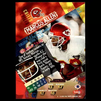 This is a 1994 Stadium Club Marcus Allen football card. The card is #613 and is in NM-MT condition.