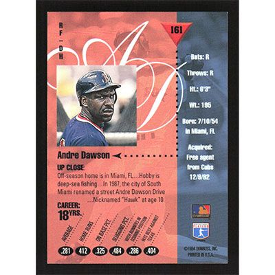 This is a 1994 Studio Andre Dawson baseball card. The card is #161 and pictures show condition.