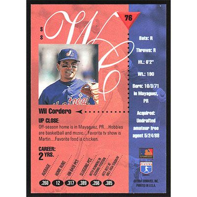 This is a 1994 Studio Wil Cordero baseball card. The card is #76 and pictures show condition.