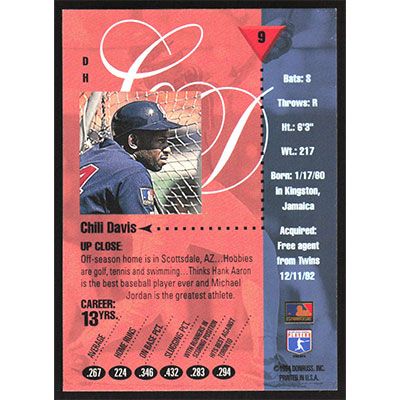 This is a 1994 Studio Chili Davis baseball card. The card is #9 and pictures show condition.