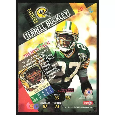 This is a 1994 Topps Terrell Buckley football card. The card is #108 and pictures show condition.
