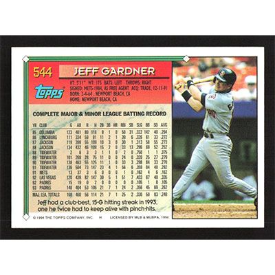 This is a 1994 Topps Jeff Gardner baseball card. The card is #544 and pictures show condition.