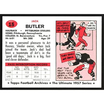 This is a 1994 Topps Archives 1957 Jack Butler football card. The card is #15 and pictures show condition.